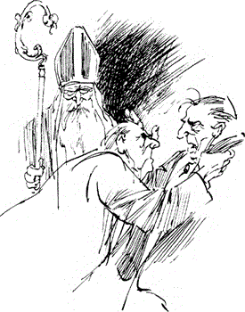 Ik liep de kamer uit om voor de pakjes te zorgen. Ze hadden allemaal wat meegebracht, voor eigen vrouw of man en ik stopte de hele boel in een wasmand en zette deze, krachtens de aardige methode die er elk jaar weer ingaat, voor de deur van ons huis. Een jongetje, dat passeerde, gaf ik een kwartje. ‘Jij belt straks even aan vent,’ zei ik met een knipoog. Het duurde wel vijf minuten, eer de bel klonk. Ik was blij dat ik het eindelijk hoorde, want ik was bepaald beroerd van dat zingen.”