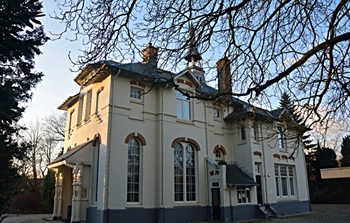 De aula (ontvangstgebouw en dienstwoningen) van de begraafplaats Vredenhof in Amsterdam