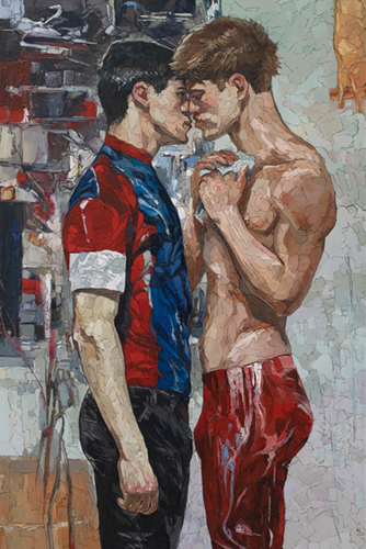 Zolderkamer en raam, mijn schaatsen aan de muur De priester kon de badkamer zien, lichtgele houten lambrisering toilet, jonge benen, glanzende zwarte beenharen “Het zijn mijn benen, señor.” De glans van haarstoppels spoelt zijn lavendelkleurige horizon af hij voelde de jongen kreunen en wat het betekende gezicht van een rotjong op de tafel van de dokter ik was de schaduw van de wassende avond en vreemde ruiten. ik was de vlek en het gejammer van gemiste tijden in de weerspiegelde hemel plekken vervuild water onder zijn lavendelkleurige horizon, raam Vlek gekrabbeld door een jongen, koude, verloren knikkers in de kamer De sjofele tafel van de dokter… zijn gezicht… De huid van de jongen spreidt zich uit naar iets anders. “CHRISTUS, WAT ZIT ERIN?” schreeuwt hij vlees en botten rezen op als een tornado “DAT DOET PIJN” ik was de vlek en het gejammer van glanzende achterbeenharen zilverpapier in de wind, rafelige geluiden van een verre stad.